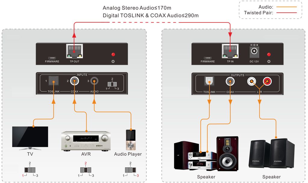 •TOSLINK и COAX до 290м