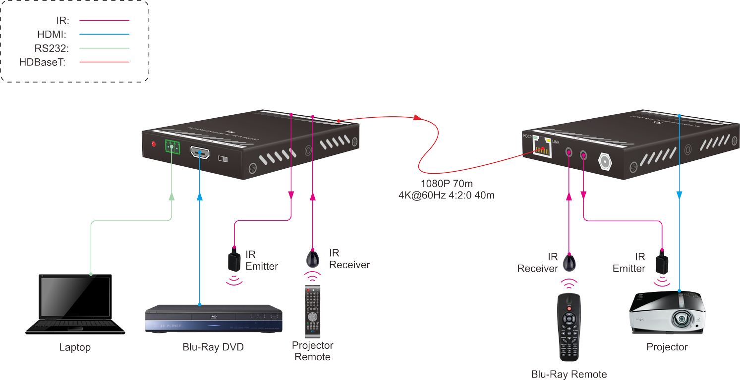 Приемник сигнала HDBT - HDMI, 1080p - 70м / 4K - 40м, IR, RS232, HDCP 2.2, PoC EX-D71R осуществляет обратное преобразование сигнала стандарта HDBT в HDMI