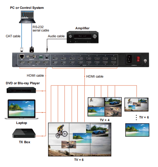 Новинка может использоваться как процессор для построения видеостен или как матричный коммутатор с бесшовной коммутацией (4 входа и 16 выходов). Устройство поддерживает мультивьюер с выводом до 4 окон на дисплей, работу с несколькими видеостенами одновременно (до 16 дисплеев), а также автоматическое и пользовательское задание разрешения на выходе, которое может быть гибко применено к дисплею на светодиодной стене.